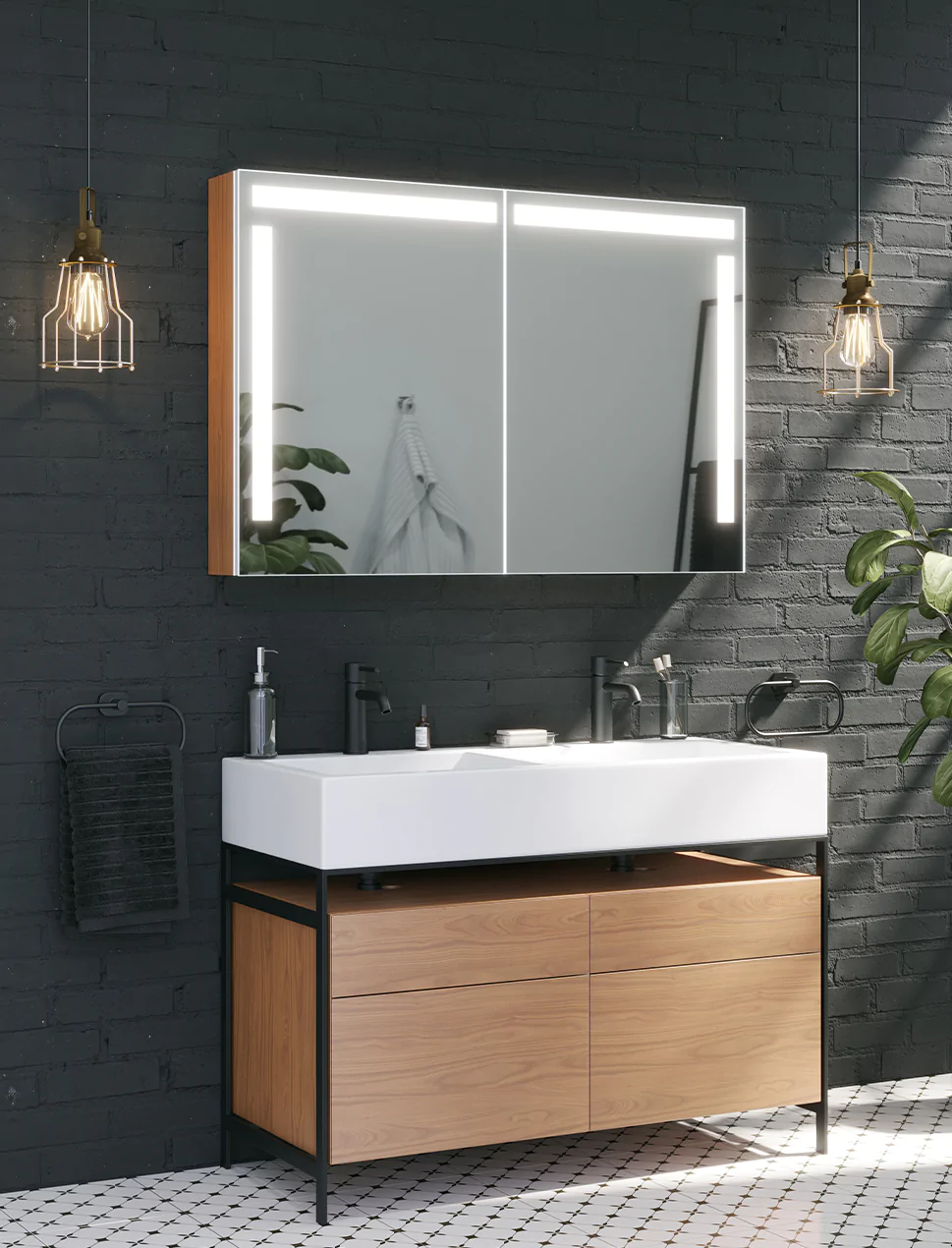 Der Spiegelschrank vereint modernes Design mit energieeffizienter LED-Beleuchtung und sorgt so für eine optimale Ausleuchtung Ihres Badezimmers sowie eine warme, stilvolle Atmosphäre. Dank hochwertiger Materialien und einer edlen Verarbeitung bietet diese Lösung Komfort, Langlebigkeit und zeitlose Eleganz – perfekt für ein modernes Badezimmer.